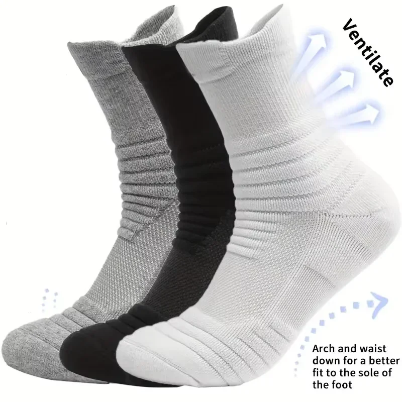 3Pairs/Lot Men's High Elastic Compression Socks Breathable Sports Cycling Tube Socks Moisture Wicking Basketball Stockings